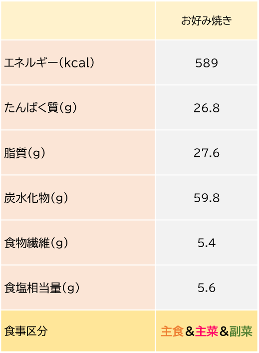 豚バラ・天かす・マヨネーズを使うので脂質はやや多めですが、「キャベツたっぷり、粉を少なめにしてヘルシーにしたい!」というOさんのこだわりもあり、粉物にしては糖質(炭水化物)控えめとなっています。ダイエット中に粉物を食べたくなった時の工夫の仕方として、色々な料理に応用できそうですね👏🏻